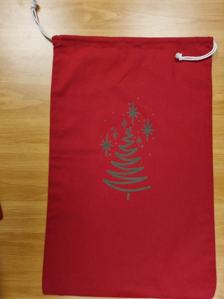 Personnalisation par flock (aspect velours) colori vert kaki : Père Noël et Sapin de Noël